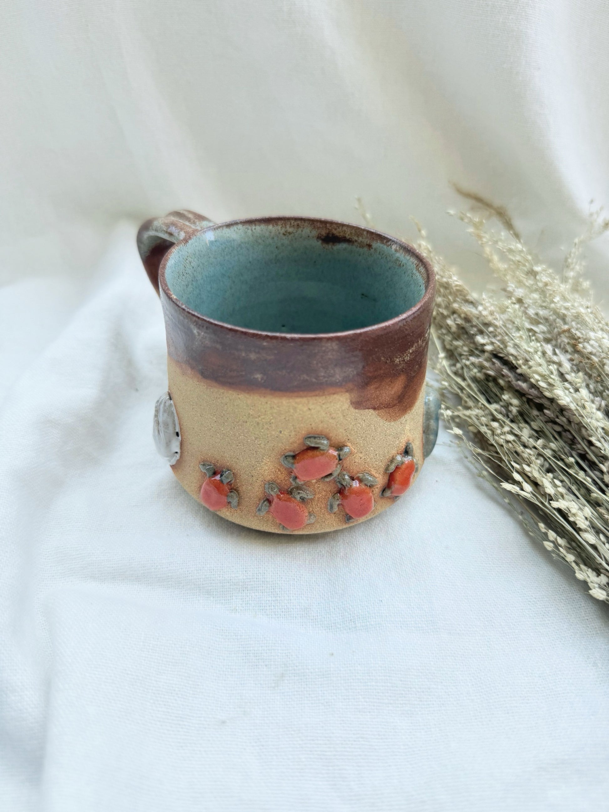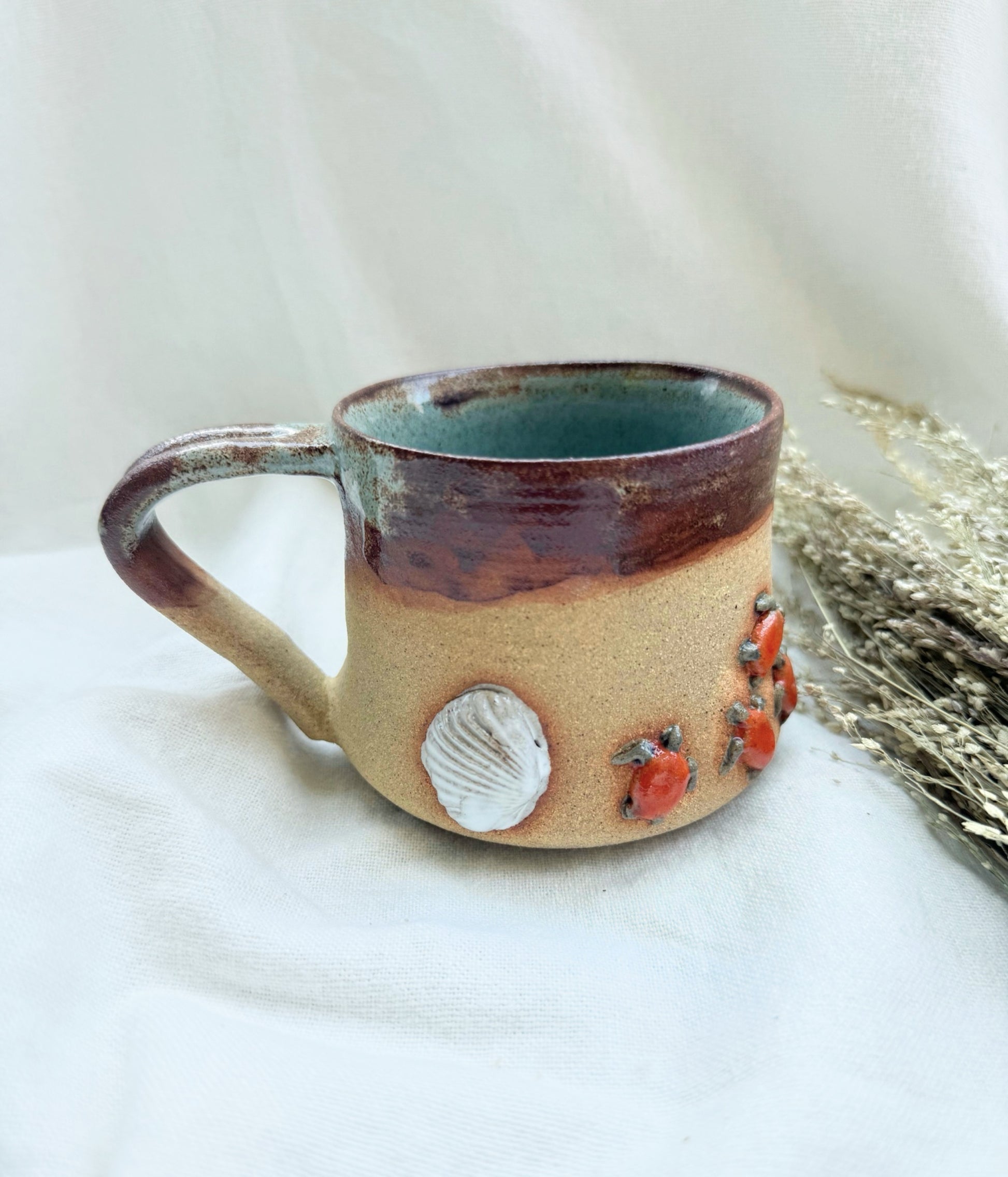 Along the shoreline, tiny hand-sculpted turtles and shells are nestled into the design, adding playful, natural details that make each sip feel like a walk along the water’s edge.